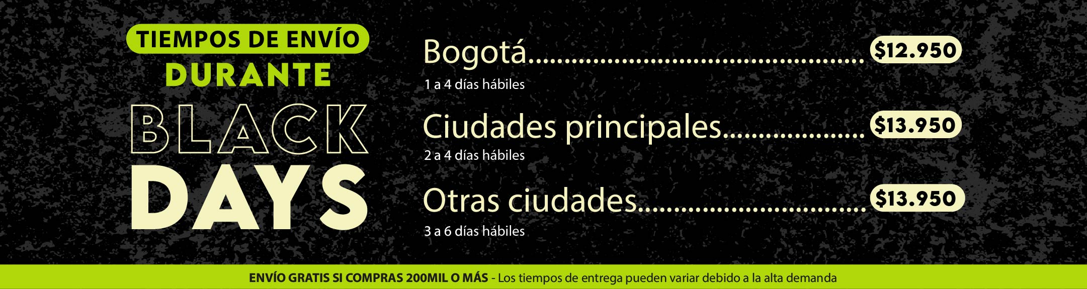 Nota: Los tiempos de entrega pueden variar debido a la alta demanda durante el Black Friday. Si tu pedido incluye camisetas, el tiempo de entrega será de 6 a 10 días hábiles.
